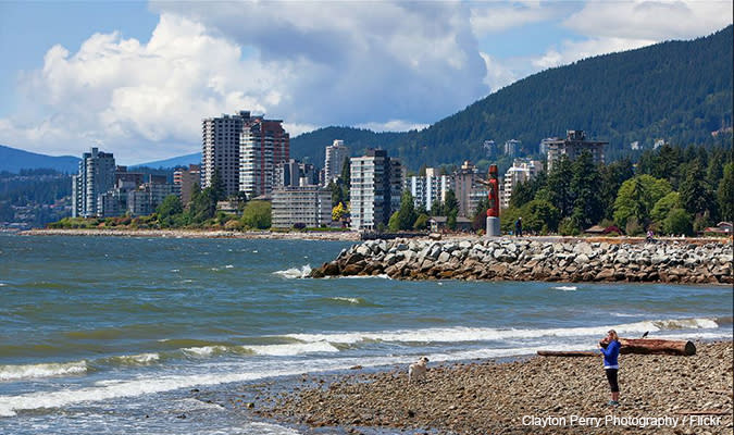 Just over the Lions Gate Bridge in West Vancouver, Ambleside Beach is a favourite with families. You’ll find a lovely long stretch of sandy beach for building sand castles, a playground for climbing, and a little café for grabbing an ice cream. But among grown-ups, Ambleside is known for its own strollable seawall boasting spectacular views back to Stanley Park and the downtown skyline.
